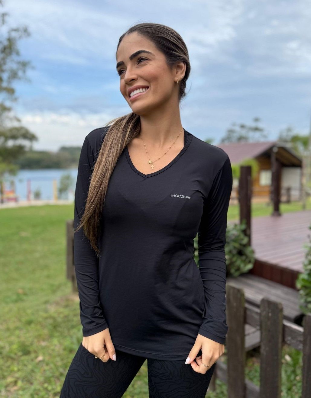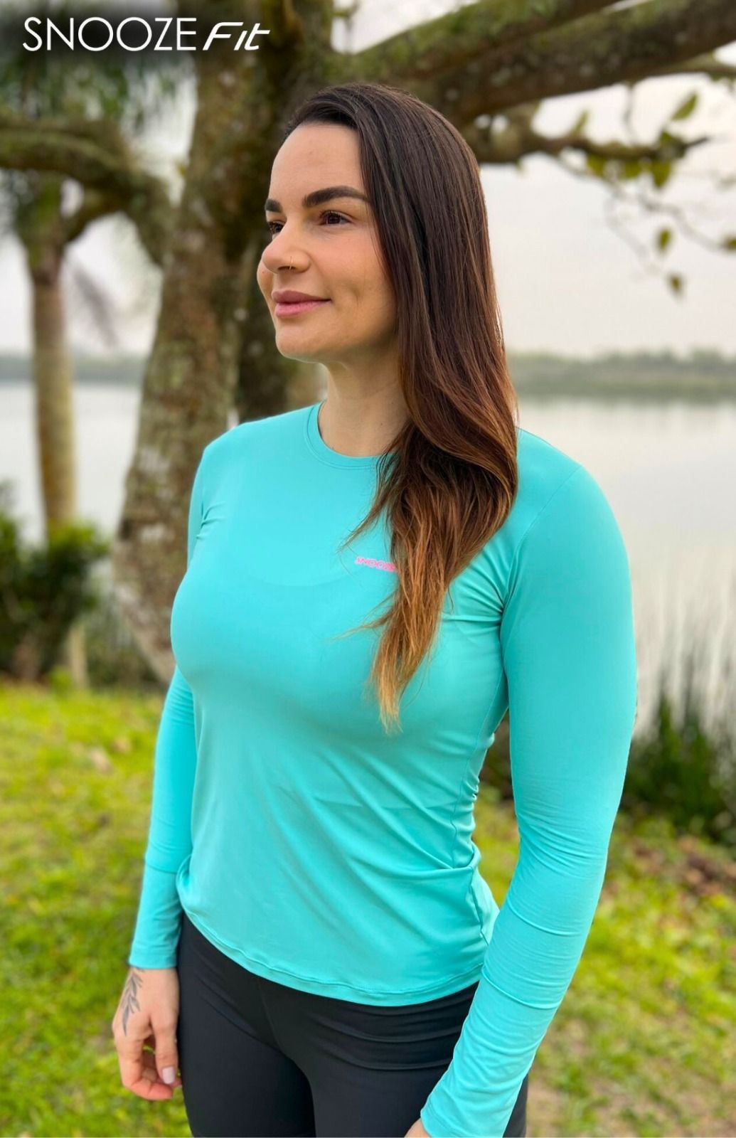 blusa manga longa uv50+ lycra poliamida decote u feminina snooze