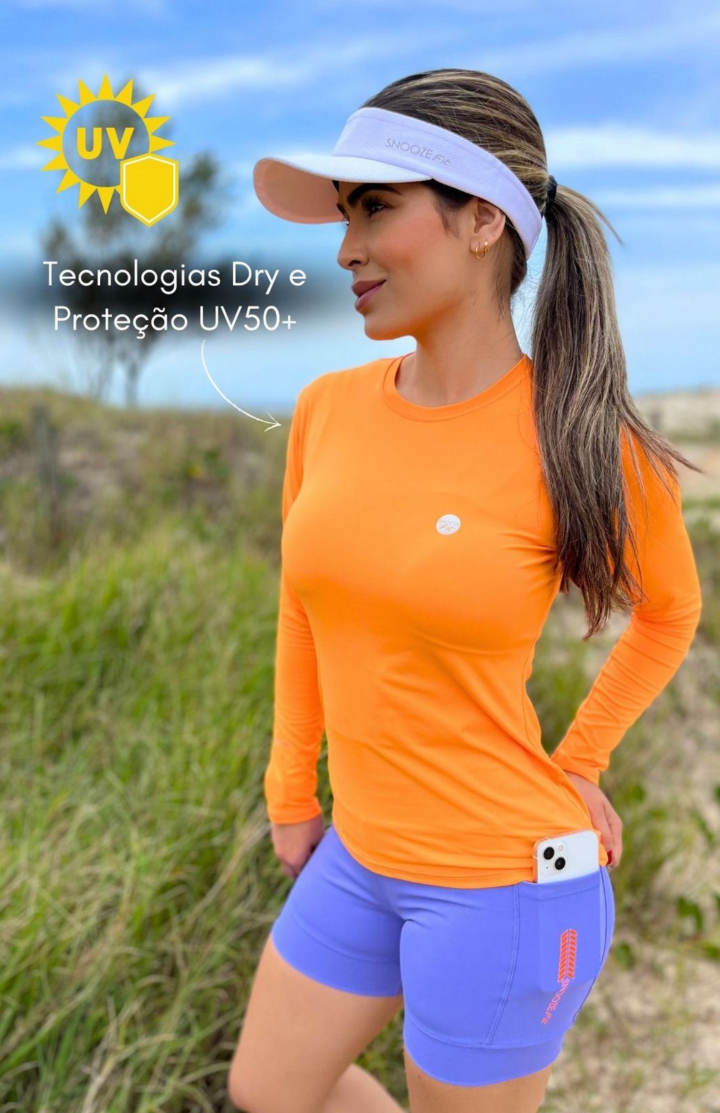 blusa tapa bumbum fresh dry uv50+ manga longa feminina snooze