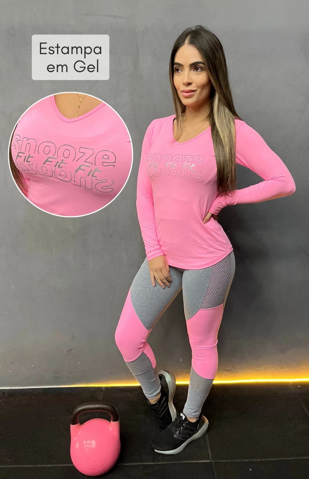 blusa ultra fit uv50+ decote v manga longa estampa snooze
