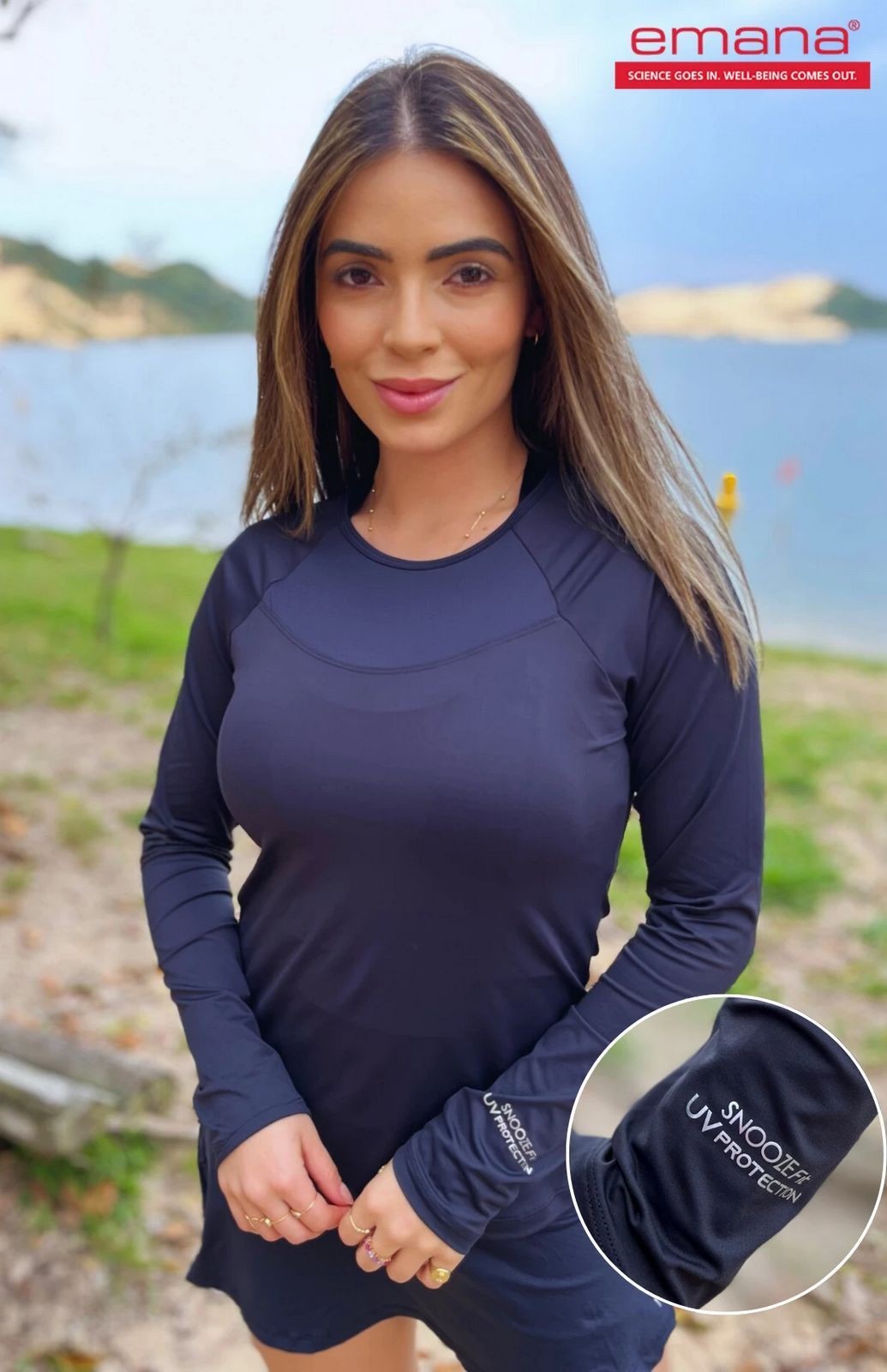 blusa slim emana care uv50+ poliamida manga longa raglan snooze